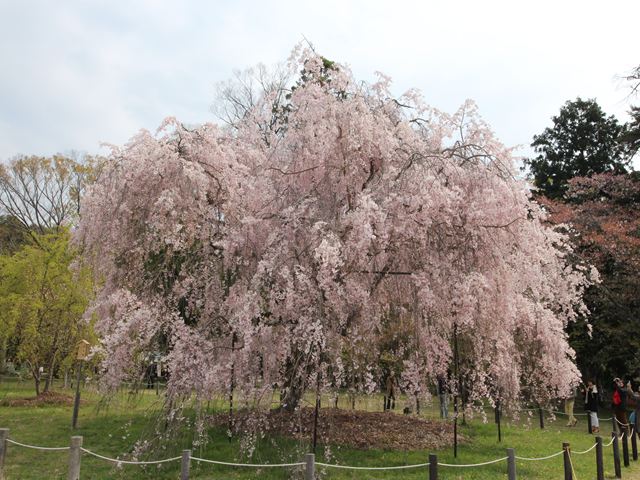 満開の紅枝垂れ桜がありました。【斎王桜】と名称がついていました。