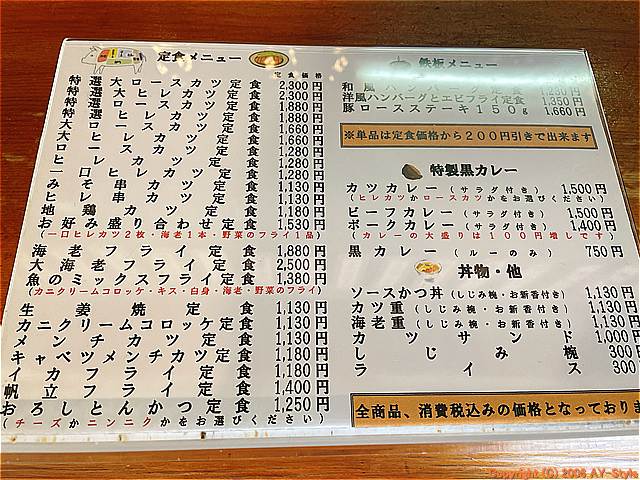 看板メニューはサクサクの衣とジューシーな肉質が楽しめるとんかつ、 そしてスパイスの効いた深みのある黒カレー。 この黒カレーは横須賀のご当地グルメ「横須賀海軍カレー」とも 異なる独自の味わいで、多くの常連客を魅了しています。 おすすめメニュー例 とんかつ定食:衣がサクサクで脂身がほどよく、ボリュームたっぷり。価格は1,200円前後。 黒カツカレー:真っ黒なルーと香ばしいカツが絶妙に絡み合う一品。1,100円前後で食べ応え十分。 海老フライ定食:大きな海老がサクッと揚がり、タルタルソースと相性抜群。1,300円程度。 このように、1,000円~1,500円程度でしっかりお腹を満たせるのが魅力です。 |