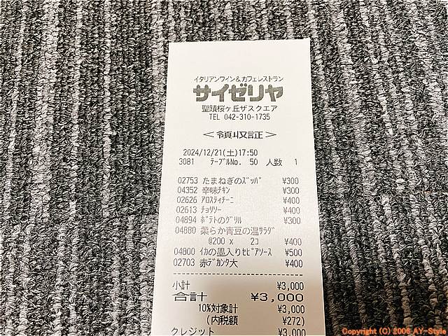 ▼サイゼリヤ聖蹟桜ヶ丘座スクエア店 1回目の訪問履歴~2024年12月~