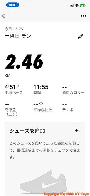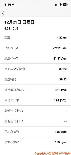 相変わらずNRCでうまくデータが拾えず、手入力 朝からいい汗をかいた朝 年末年始は体の調整をしていかないと太るので注意していきたい。 |