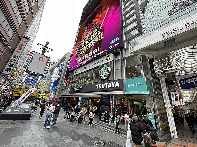 | TSUTAYA EBISUBASHI店の周辺は、まさに大阪観光の中心地。