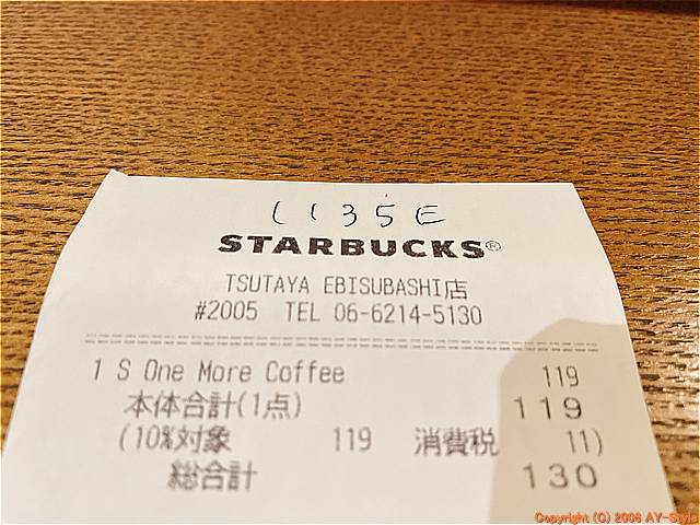 | お店の名前 | スターバックスコーヒーTSUTAYA EBISUBASHI店 |