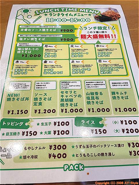 | ソース焼きそば定食 | ¥1200- | 2025/04/26 | |