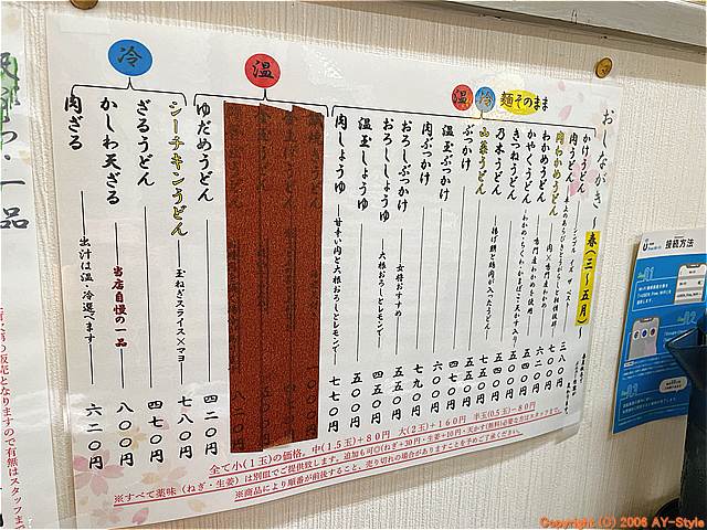 | 肉うどん(冷) | ¥700- | 〃 | |