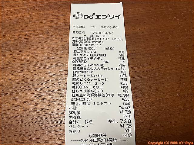 ▼鮮Do!エブリイ 宇多津店 1回目の訪問履歴~2025年05月~