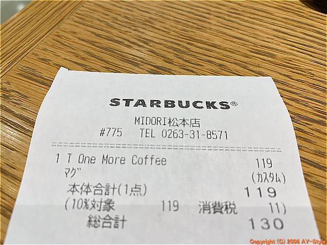 | お店の名前 | スターバックスコーヒーMIDORI松本店 |
