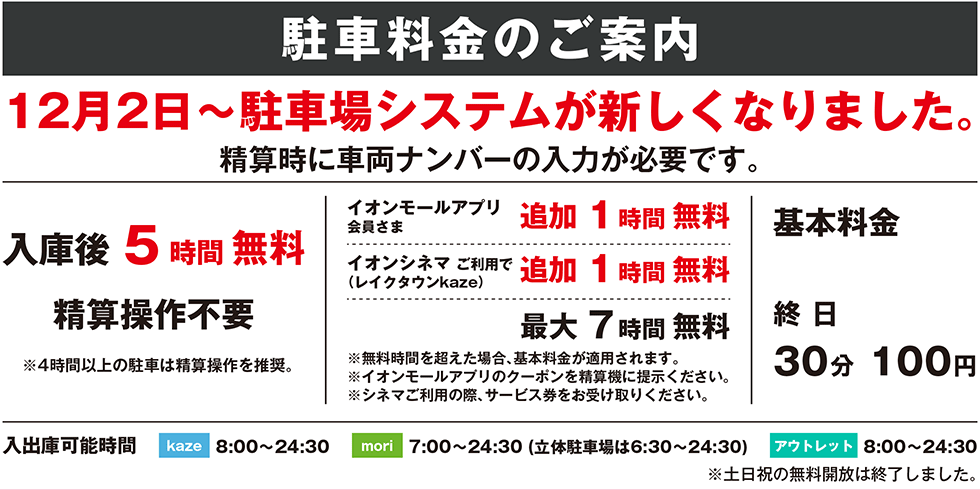 | 駐車場 | 有:イオンレイクタウン |