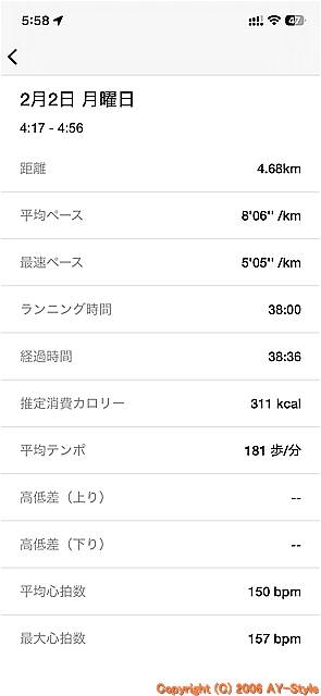 少し早すぎかな・・ 睡眠時間の確保も考えないと。 筋トレとドレッドミルで8キロラン いい汗をかいた2/11祝日の朝でした。 |