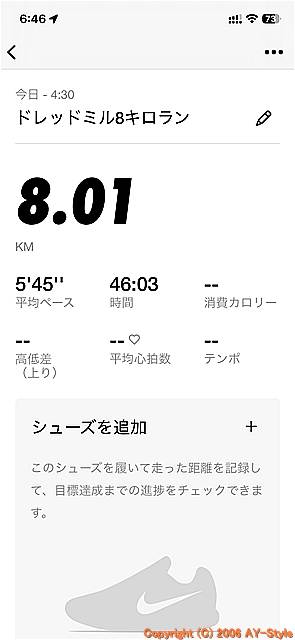 | 今朝も筋トレの後のドレッドミルで8キロラン