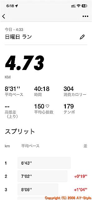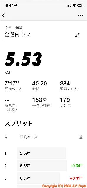 | 金曜日の朝の40分ラン