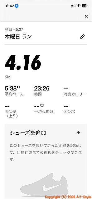※NRC(NIKE)アプリを使用し始めてからの履歴です。