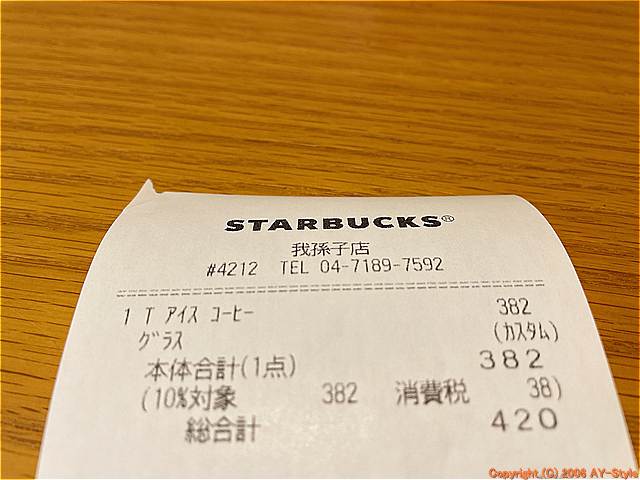 | お店の名前 | スターバックスコーヒー我孫子店 |