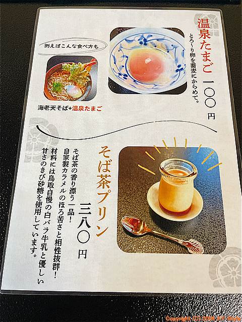 ざるそば+天ぷら:1,200円〜1,500円 単品ざるそば:800円〜1,000円 かき揚げざるそば:1,200円前後 観光地としては良心的な価格帯。 特に: 落ち着いて食べたい人 蕎麦をしっかり味わいたい人 鳥取らしい食事を探している人 に向いています。 |